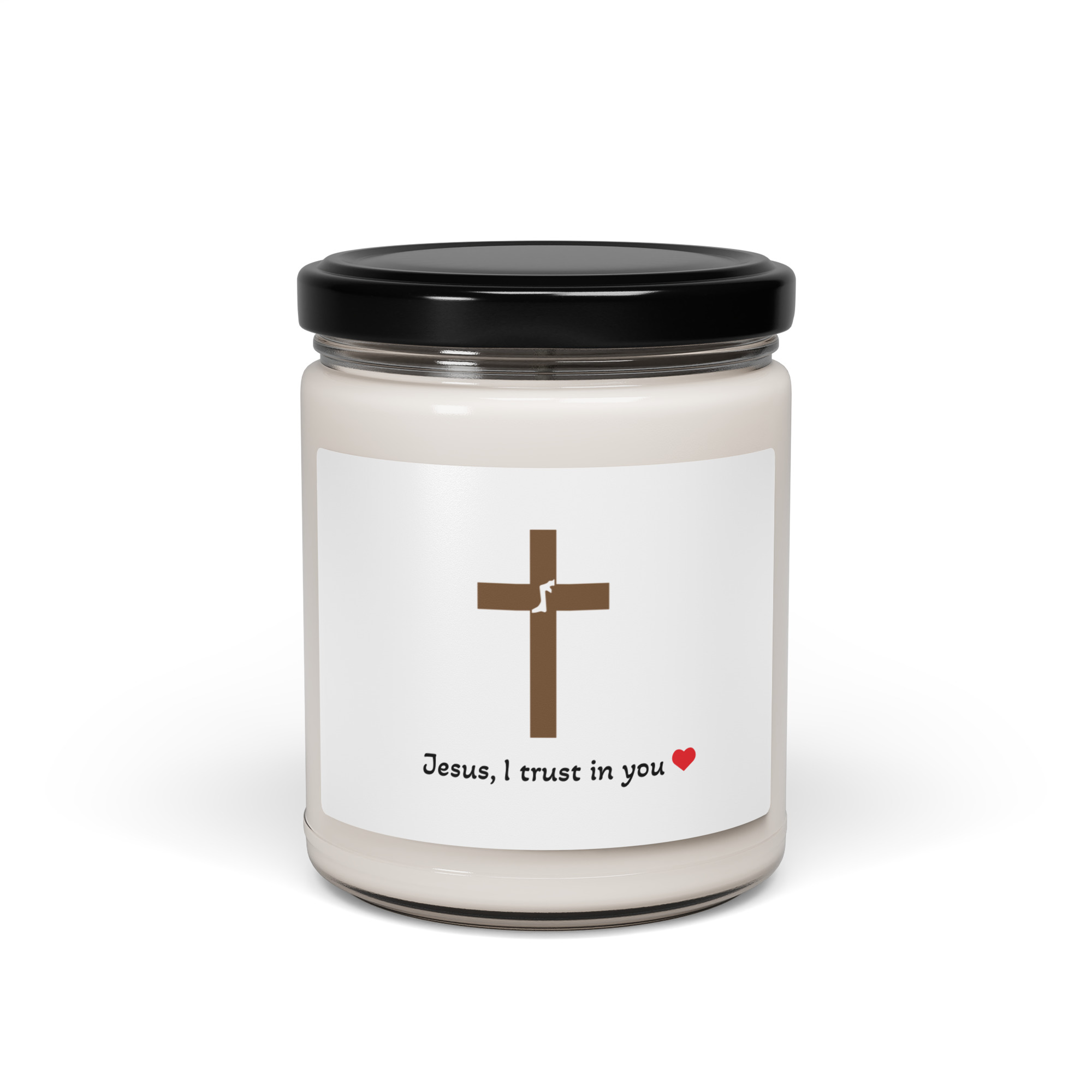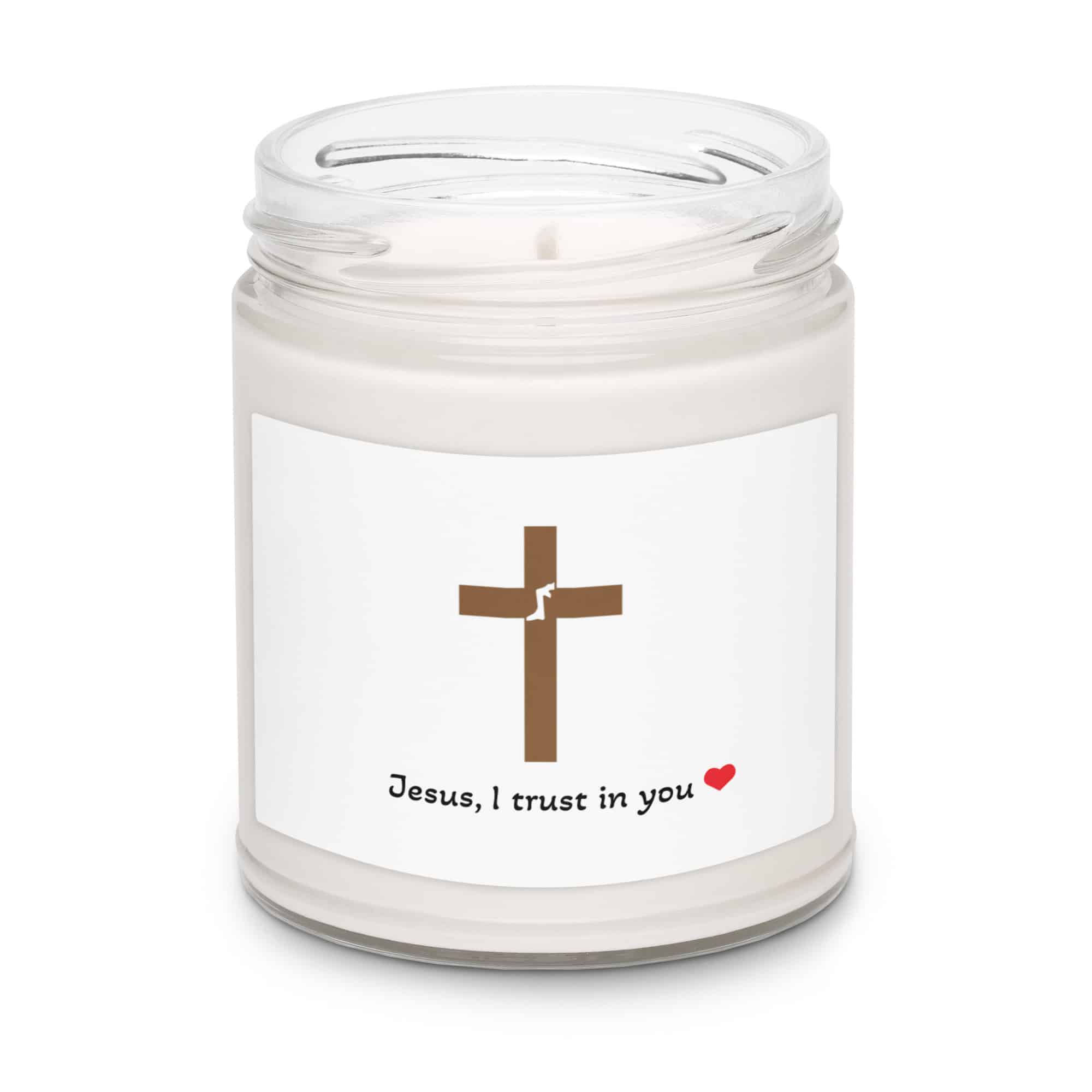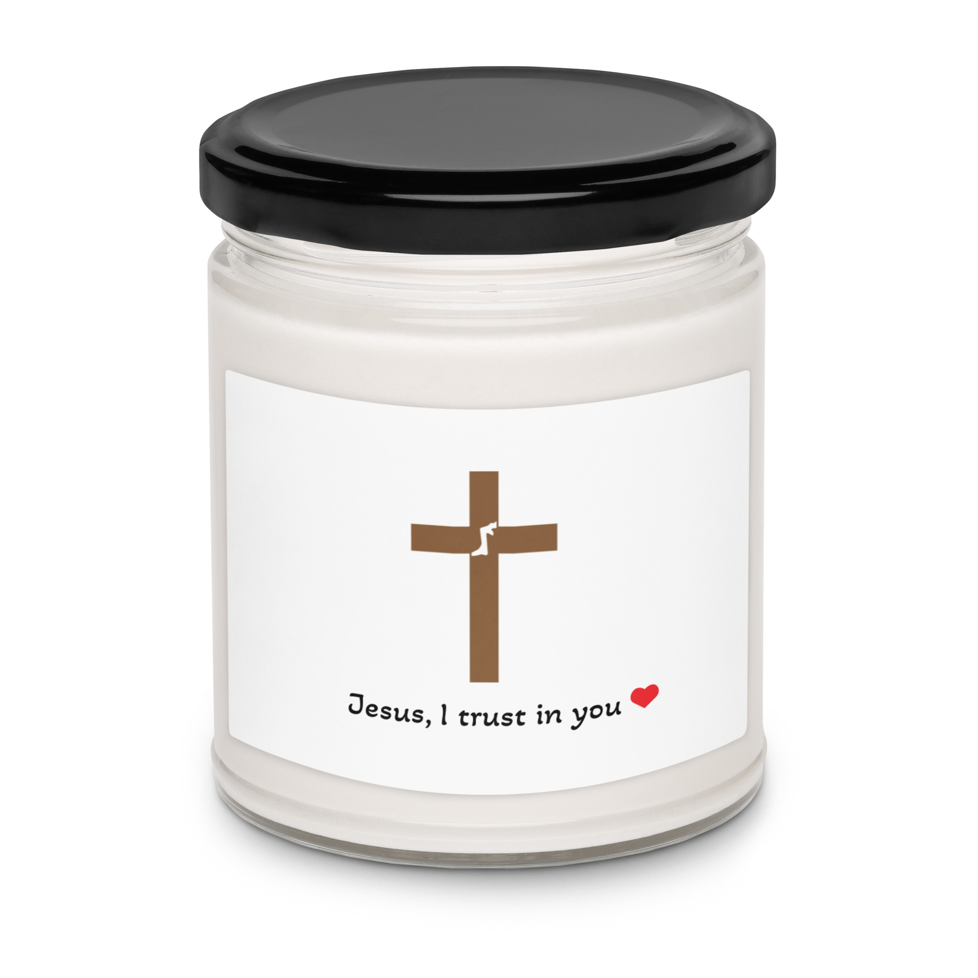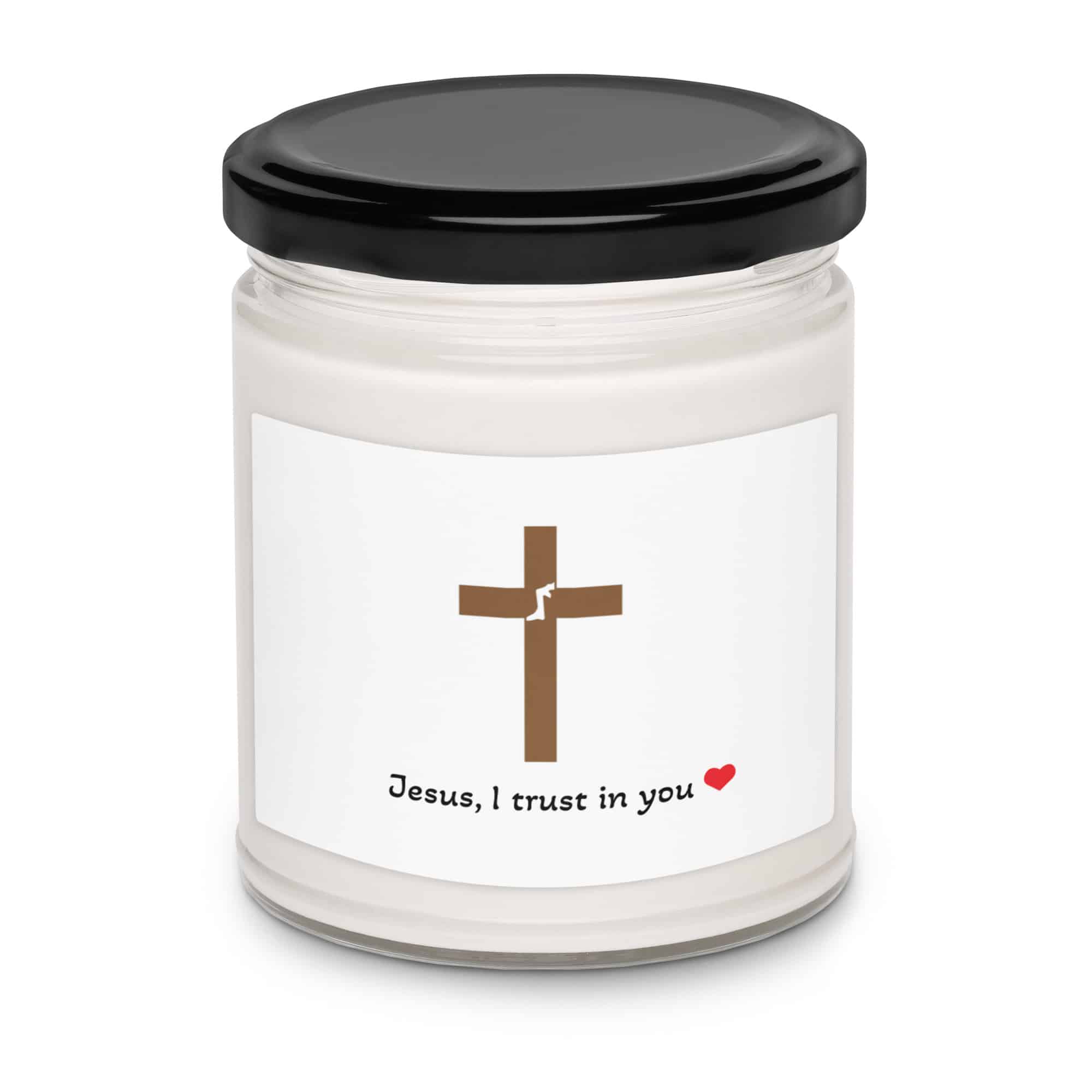 Featuring our signature cross and the words “Jesus, I trust in You,” this 9oz soy candle is more than fragrance — it is a reminder that faith remains even when life feels uncertain.